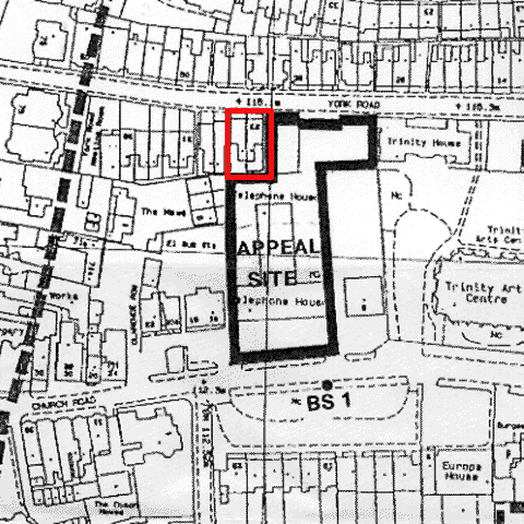 Non-existent houses Nos 23 and 25, York Road are shown on a map for outlining the appeal site by the traffic expert of Denis Wilson. The development comprises this area.